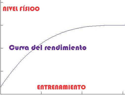 El entrenamiento no produce una mejora lineal del rendimiento del deportista, sino que la mejoría suele ir en disminución hasta que llega un momento en que se estanca o incluso decrece. Esta curva varía dependiendo de cada persona y la disciplina deportiva, pero en todos coincide en que al aumentar el entrenamiento el incremento del rendimiento no es proporcional como podemos observar en la siguiente gráfica: